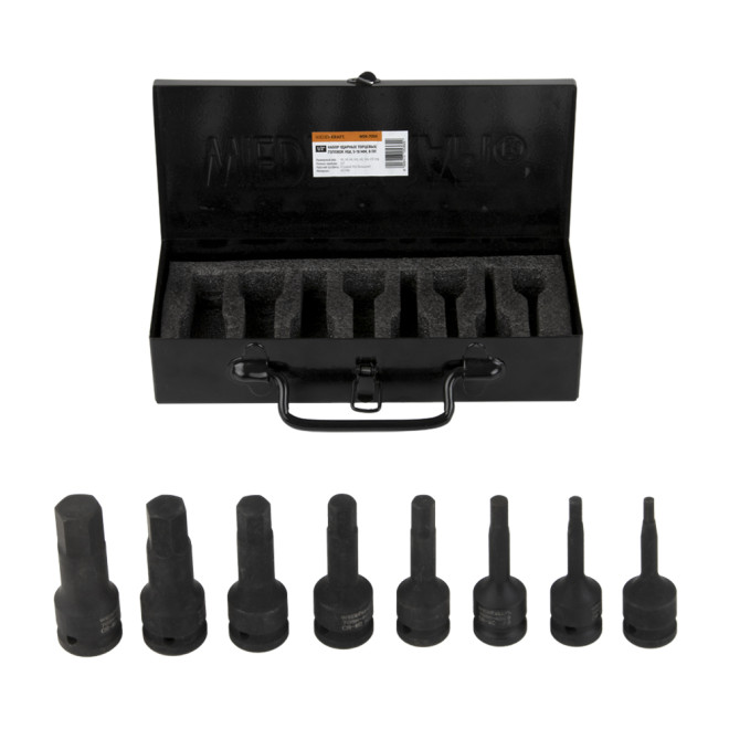 WDK-711 Набор ударных головок 1", 27-50 мм, 10 предметов
