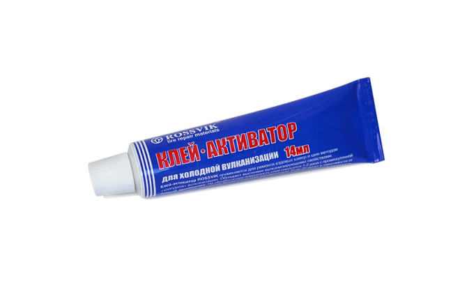 Универсальный клей-активатор ROSSVIK применяется для ремонта камер и шин латками, грибками, жгутами и кордовыми пластырями методом “холодной” вулканизации. Состав негорючий, термостойкий, быстросохнущий. Содержит активаторы “холодной” вулканизации резины.